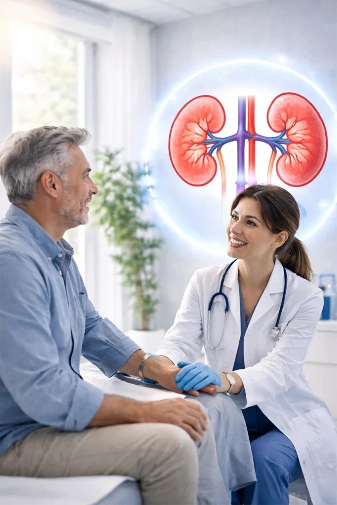 Visita nefrologica che consiste nell’anamnesi da parte di uno specialista nefrologo per valutare eventuali sintomi indicativi per lo stato di salute dei reni
