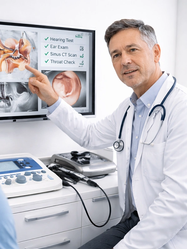 La visita otorinolaringoiatrica è fondamentale per valutare in modo completo la salute di orecchio, naso e gola. Lo specialista esegue un’analisi approfondita delle strutture anatomiche e delle funzioni, individuando eventuali alterazioni o patologie.